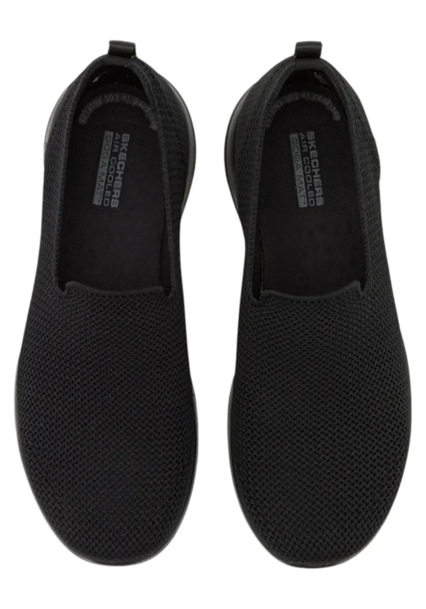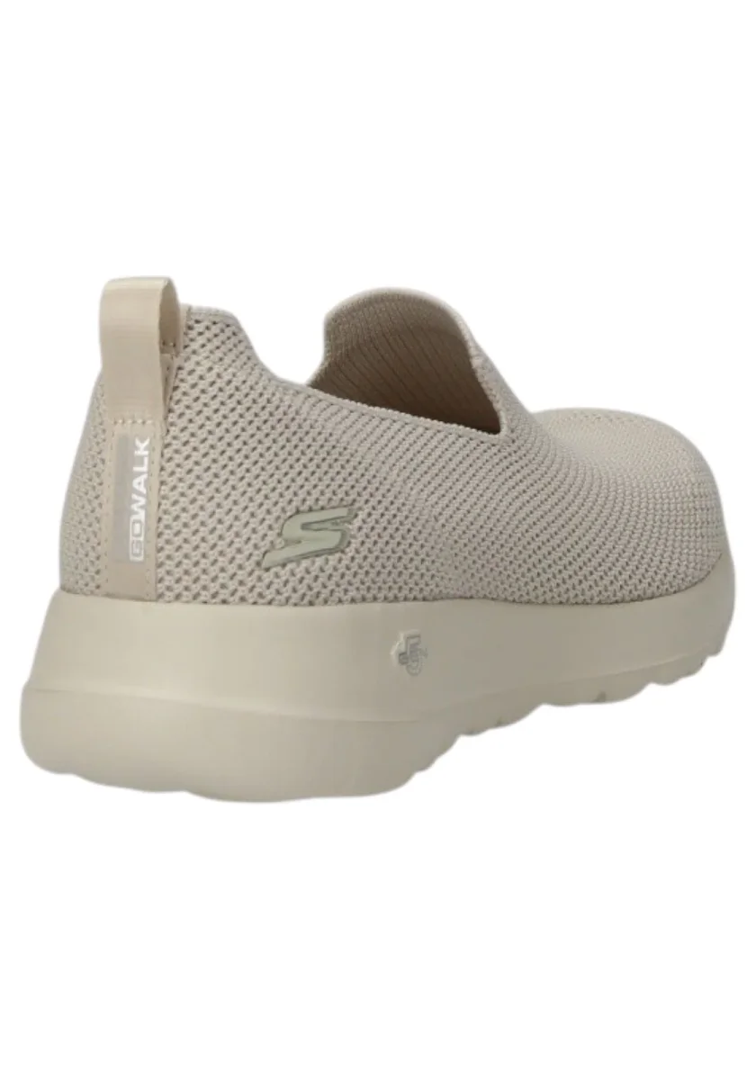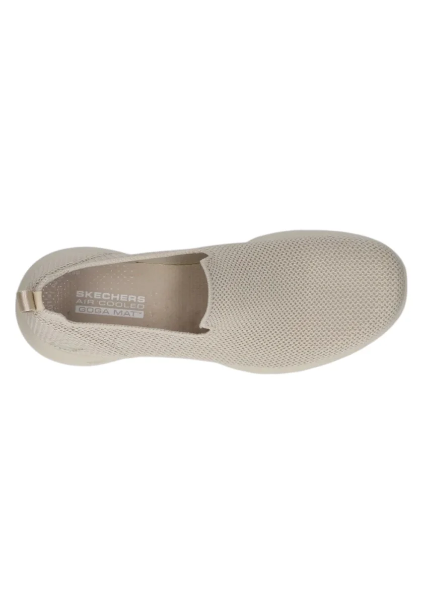 Scarpa Skechers taupe slip-on con tomaia in tessuto mesh traspirante. Soletta Air Cooled Goga Mat™ e suola comoda per camminata quotidiana.