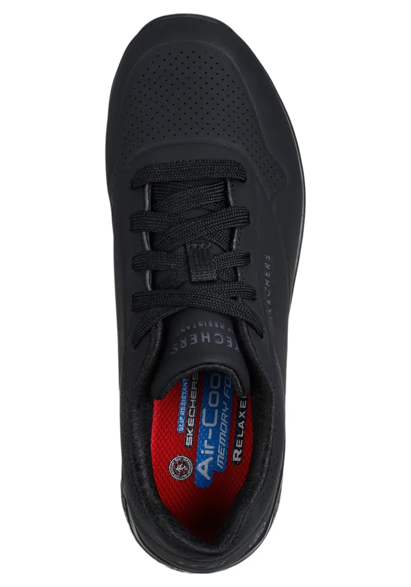 Uno dei modelli preferiti diventa ancora più comodo e sicuro con SKECHERS Work™: Uno SR. Questo modello da lavoro antiscivolo presenta una tomaia durevole in durabuck tecnico traforato con soletta SKECHERS Air Cooled Memory Foam® e intersuola ammortizzata con tecnologia visibile Skech-Air®.