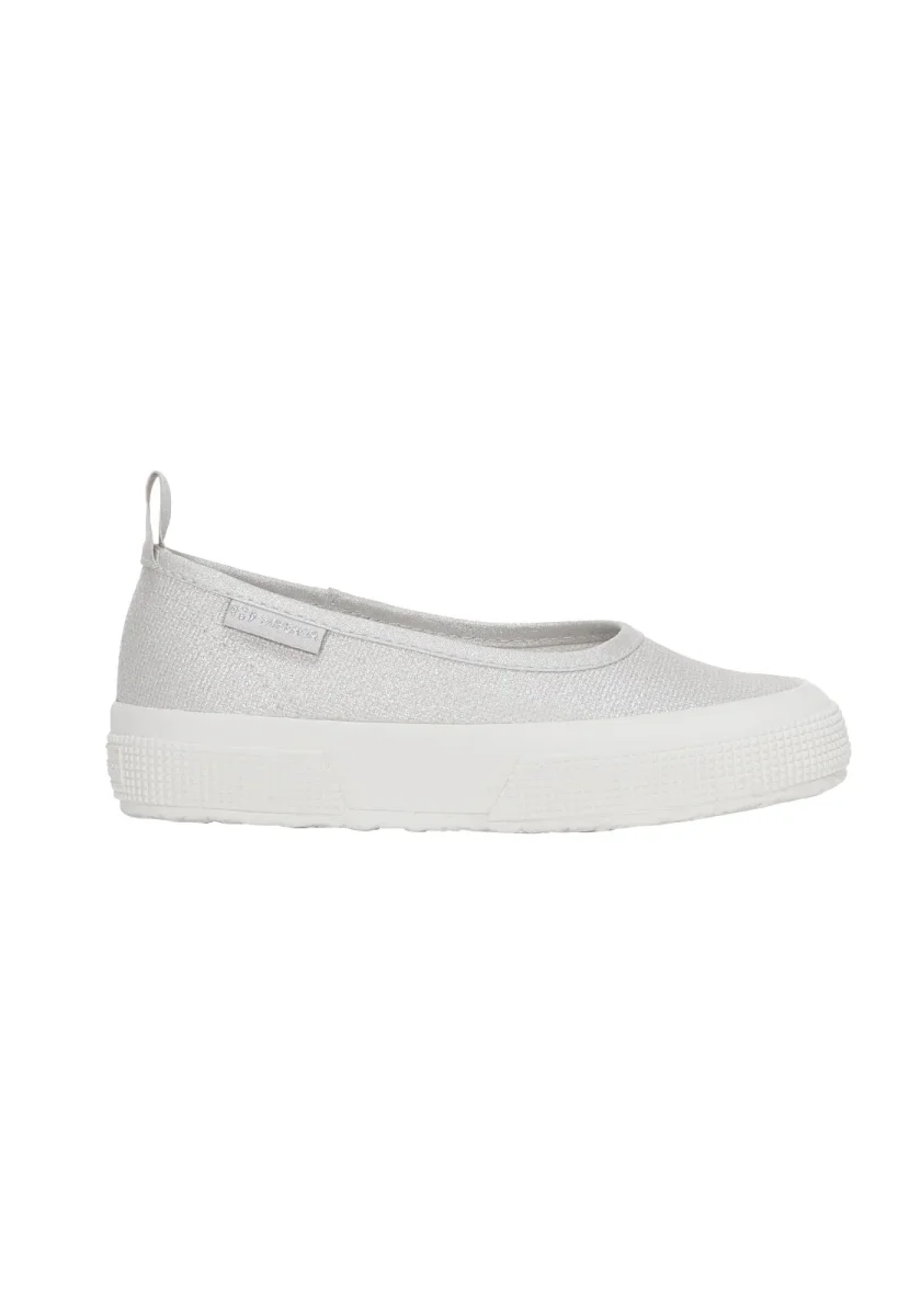 Il DNA di Superga Kids in versione ballerina, con lacci in raso per una nota ancora più romantica, da indossare anche durante le cerimonie estive.