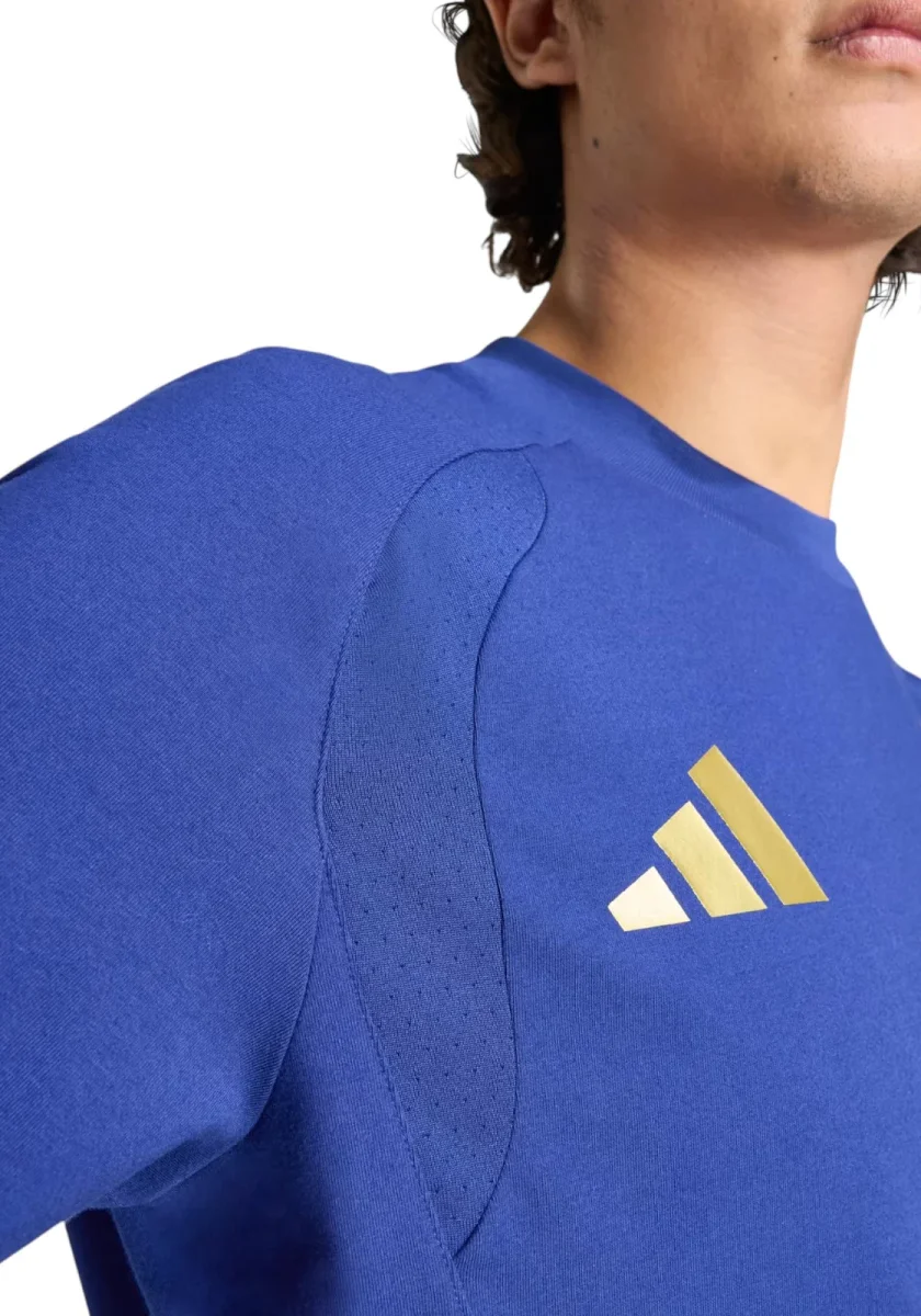 La t-shirt da viaggio Italy Tiro porta un’energia sportiva e decisa al tuo guardaroba quotidiano. Con una vestibilità essenziale e una morbida elasticità, unisce la tradizione calcistica alla praticità moderna. Le linee ergonomiche donano un look elegante, mentre la costruzione in maglia singola garantisce leggerezza e comfort. Il girocollo e le maniche corte le conferiscono un profilo casual per un look versatile. Rifinita con l’iconico marchio adidas e lo stemma della Federazione Italiana Giuoco Calcio, si presenta con un tocco di stile discreto. Un capo sobrio, perfetto per i viaggi, che dona un tocco di sobria eleganza alla tua giornata.