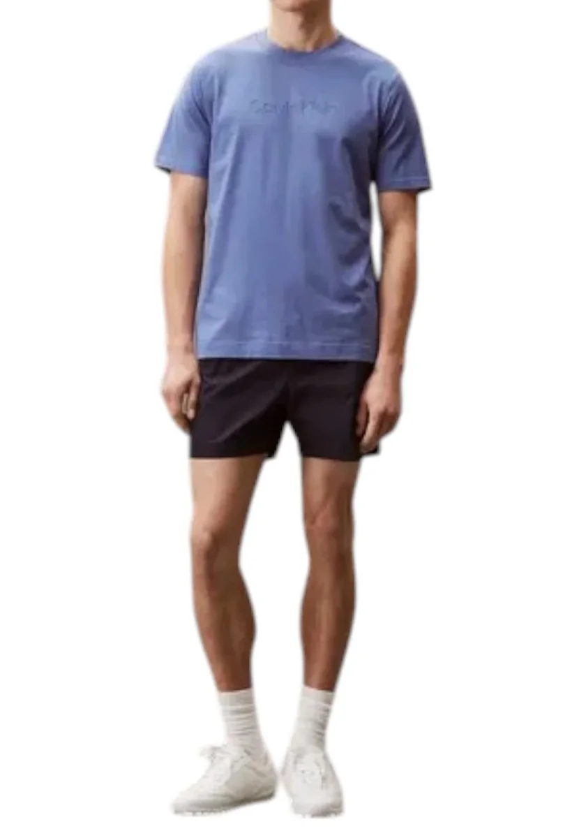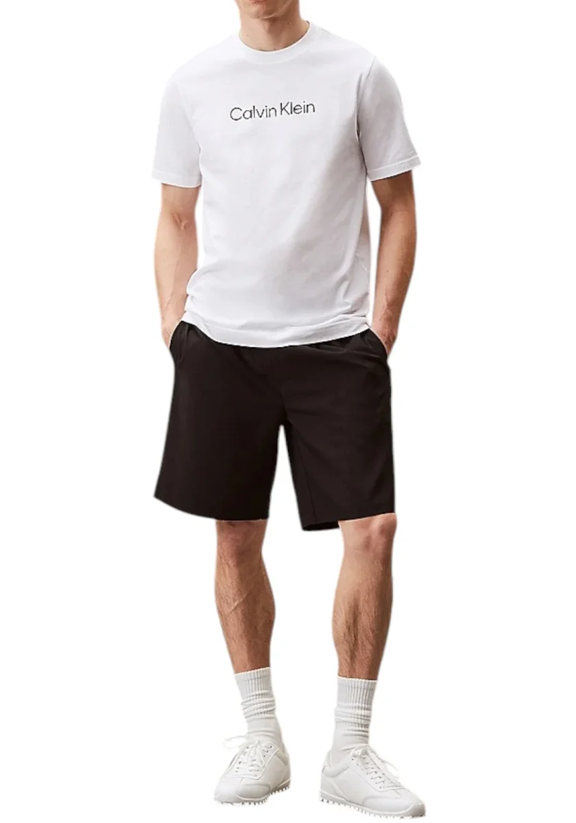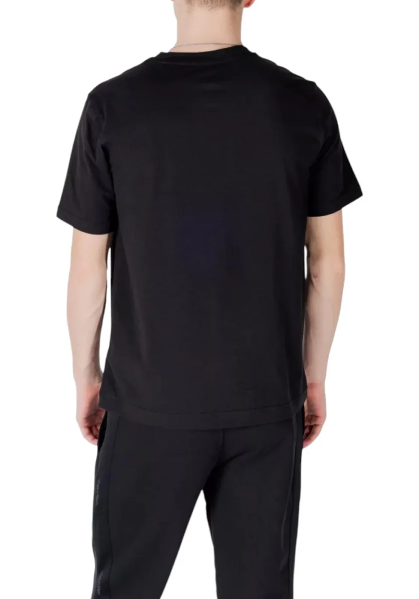 T-shirt nera a maniche corte con logo Calvin Klein tono su tono stampato sul petto. Realizzata in cotone morbido per un comfort quotidiano, dal taglio regular e stile minimal.