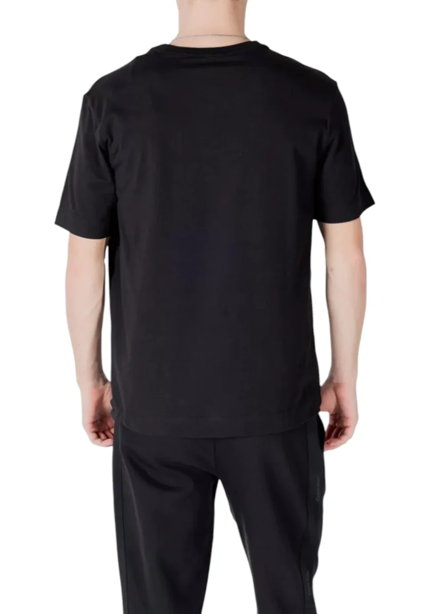 T-shirt Calvin Klein da uomo in cotone nero, caratterizzata da una stampa frontale con logo Calvin Klein a contrasto bianco. Vestibilità regolare e design minimalista per un look casual e moderno.