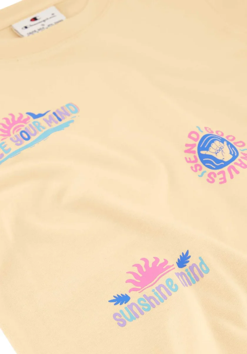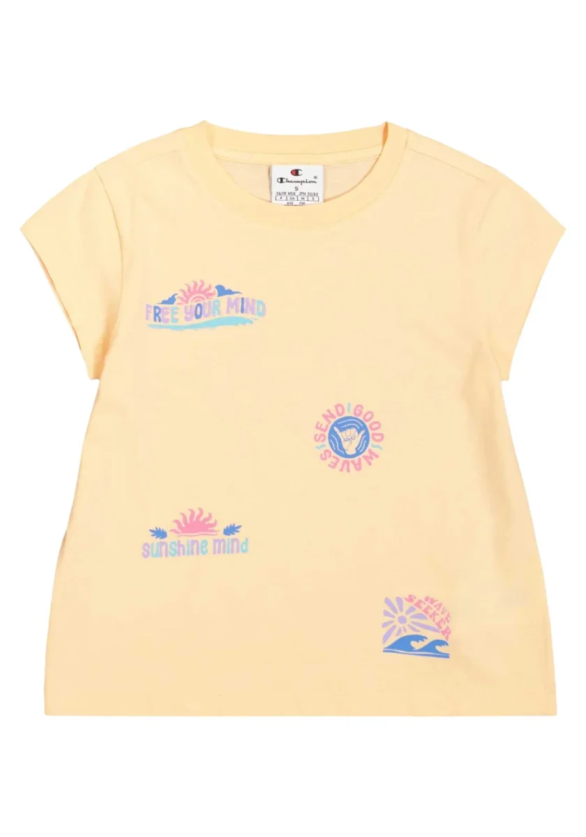 T-shirt estiva da bambina con stampe colorate. Cotone morbido e taglio comodo.