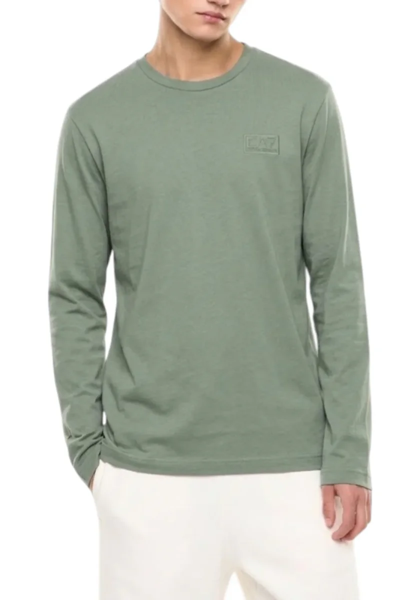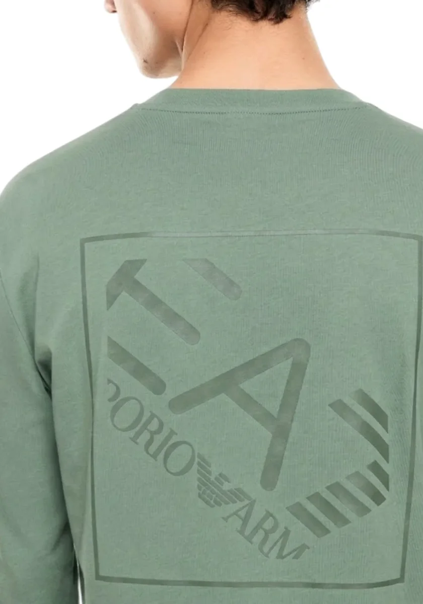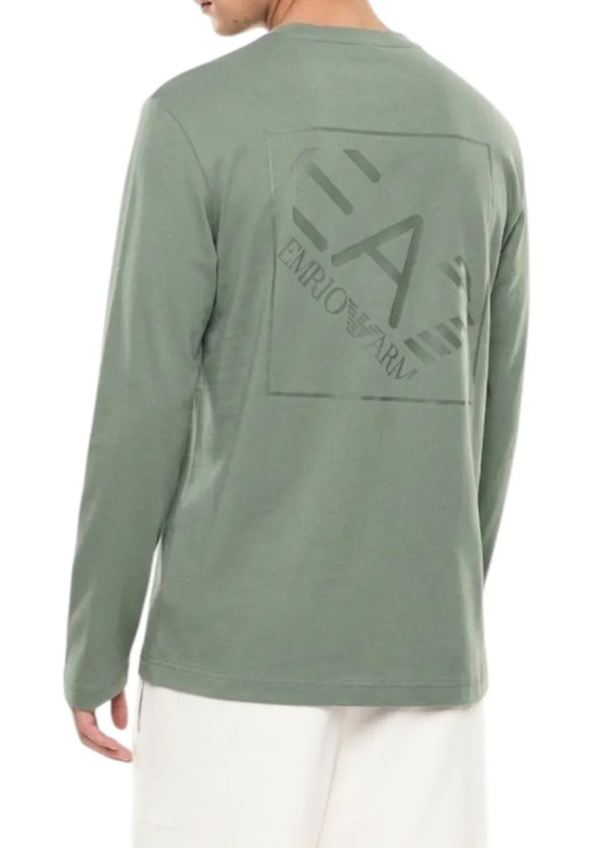 T-shirt girocollo, a maniche lunghe realizzata in jersey di cotone, impreziosita dalla stampa in tono sul retro con maxi logo EA7. Un capo passepartout per outfit versatili, che spaziano dalla palestra al training outdoor.