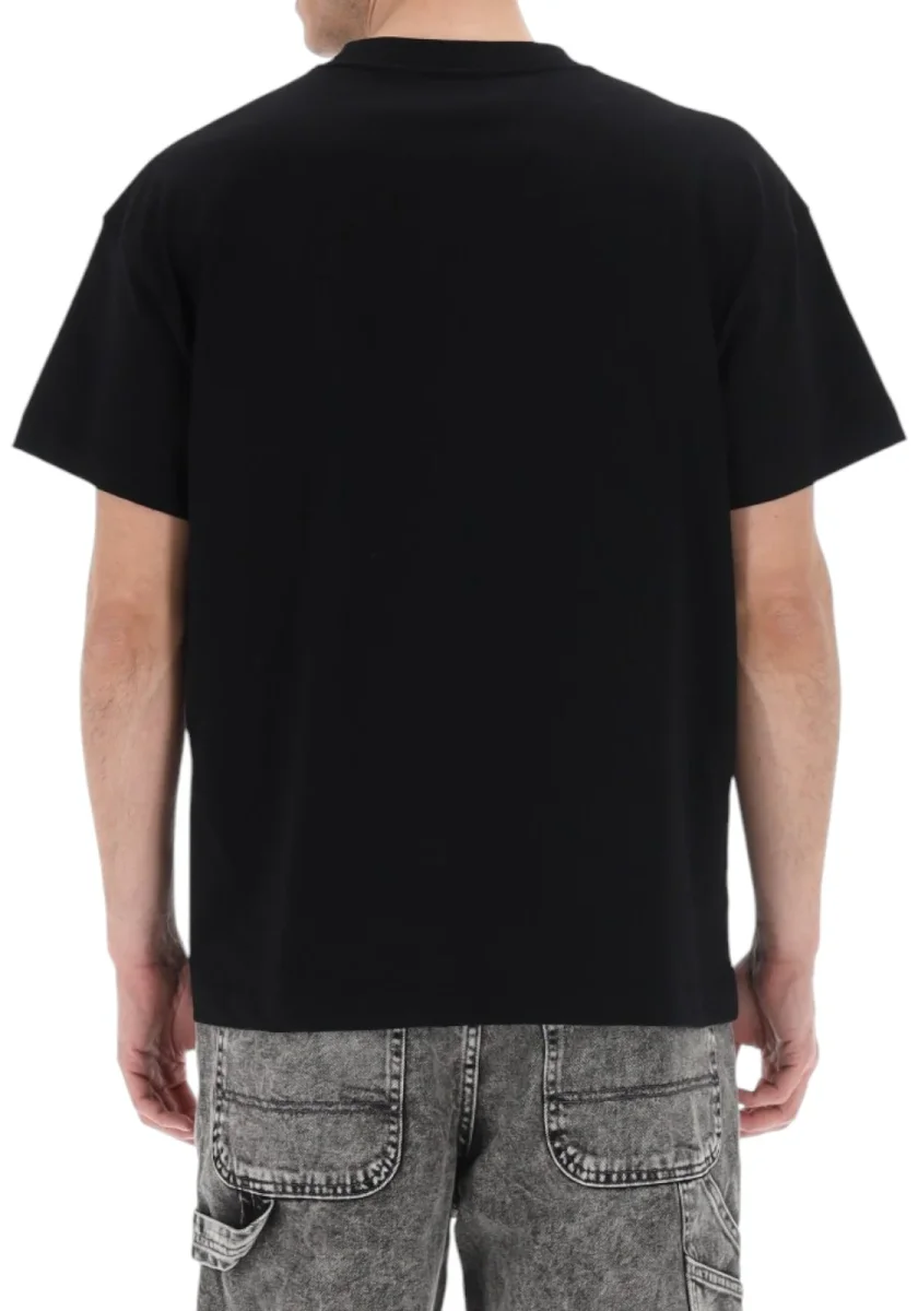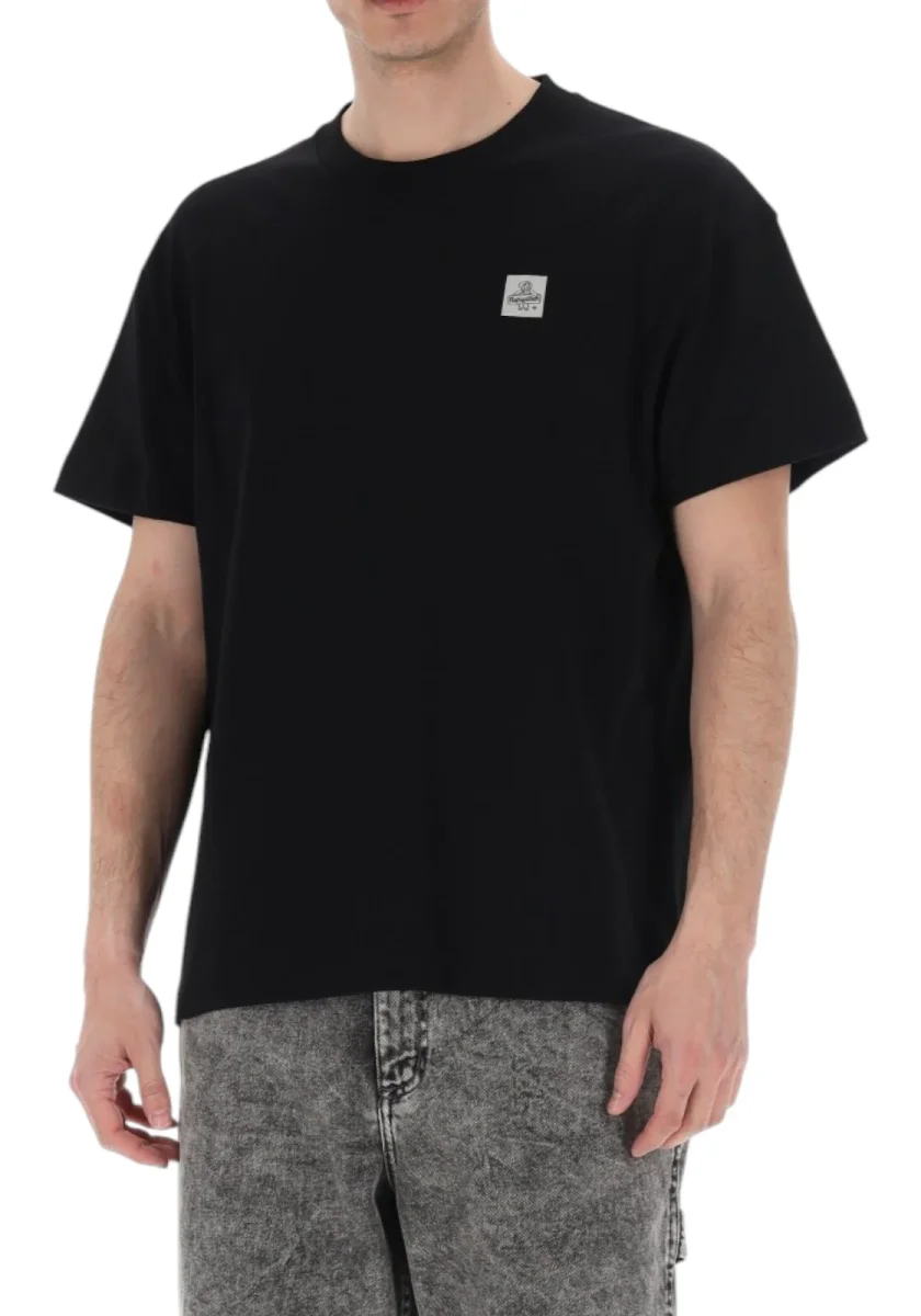 T-shirt nera da uomo in cotone, dallo stile casual con vestibilità comoda. Presenta un piccolo logo patch RefrigiWear sul petto, tono su tono. Perfetta per un look urbano e versatile.