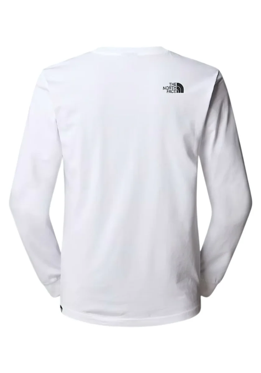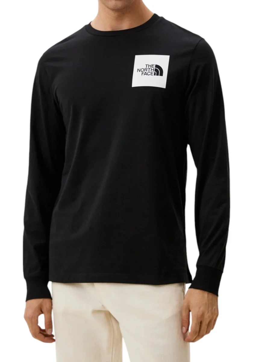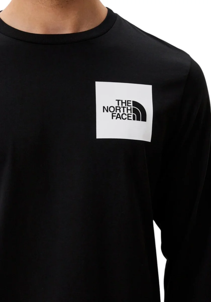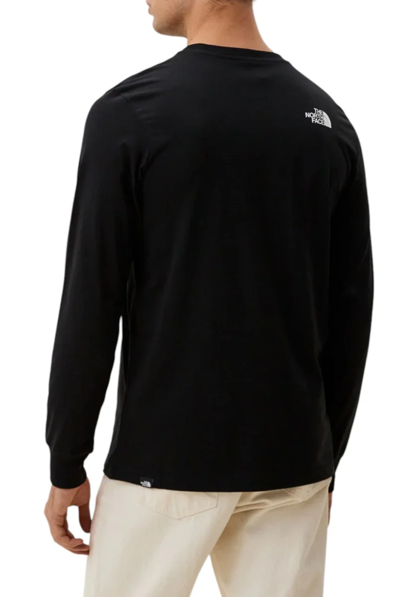 T-shirt nera a maniche lunghe firmata The North Face, realizzata in morbido cotone e caratterizzata da una vestibilità regular. Il design è essenziale e moderno, impreziosito da una stampa con logo bianco sul petto e sulla parte alta della schiena, ideale per un look casual ma ricercato.