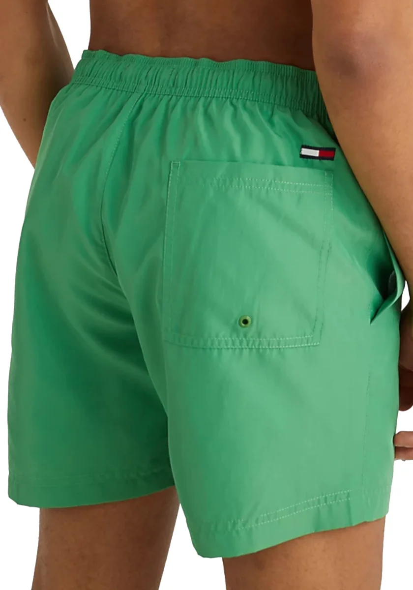 Il costume shorts di media lunghezza è pratico e di tendenza, grazie ai comodi lacci in vita e alle utili tasche laterali e sul retro.