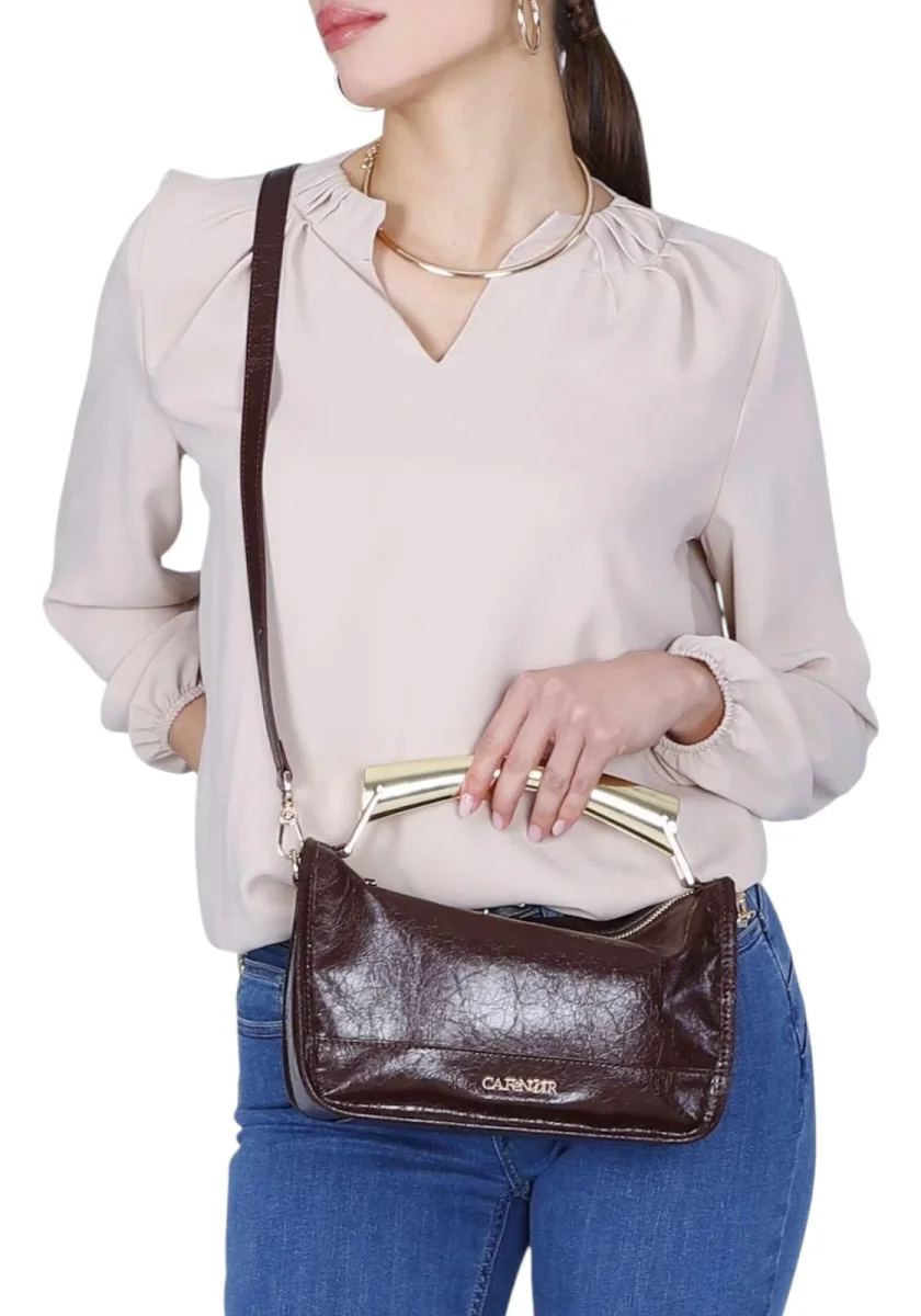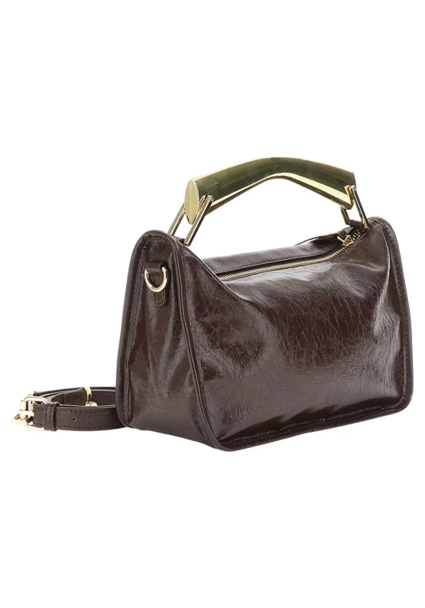 Mini bag effetto pelle naplak manico rigido in metallo dorato charm con logo tracolla removibile e lettering in metallo per un tocco glam deciso.