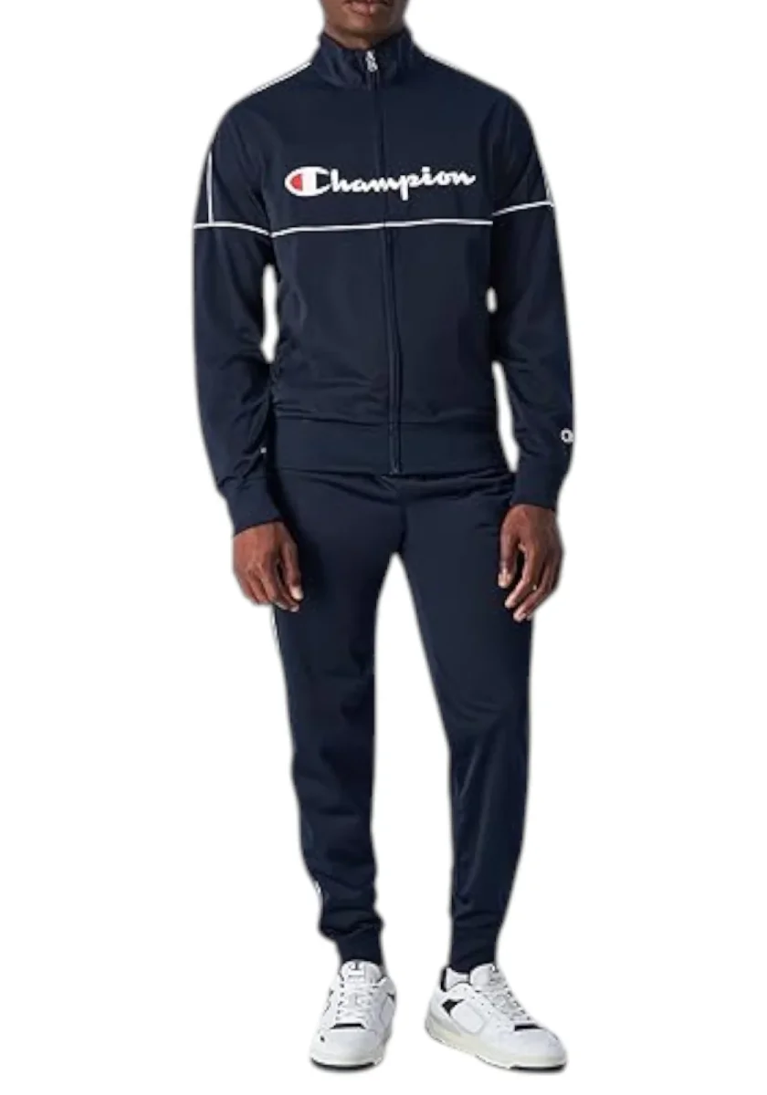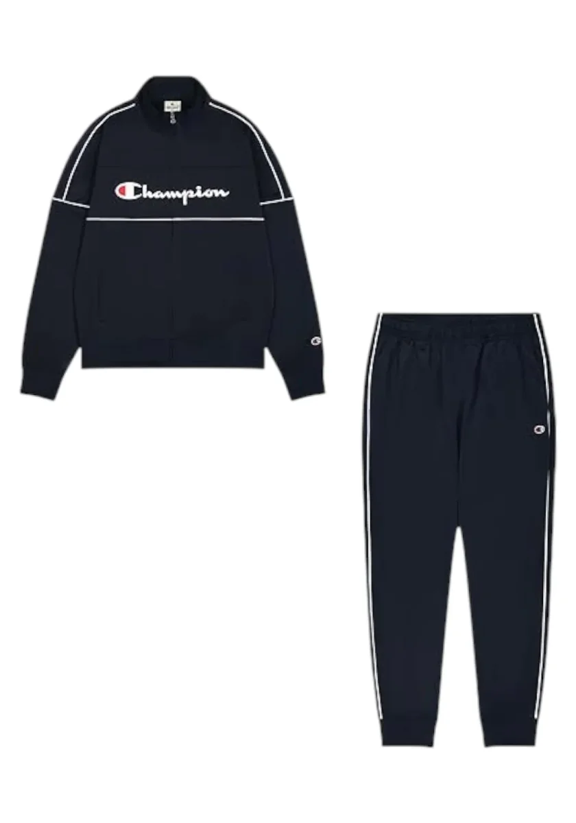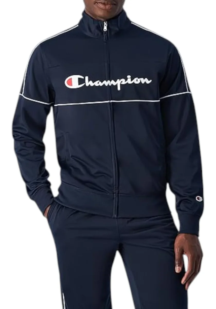 Giacca con zip – Giacca trendy con zip e logo Champion applicato – Chiusura con zip in metallo – Collo alto – Tasche laterali – Vita e polsini elasticizzati- Profili in contrastoPantaloni
