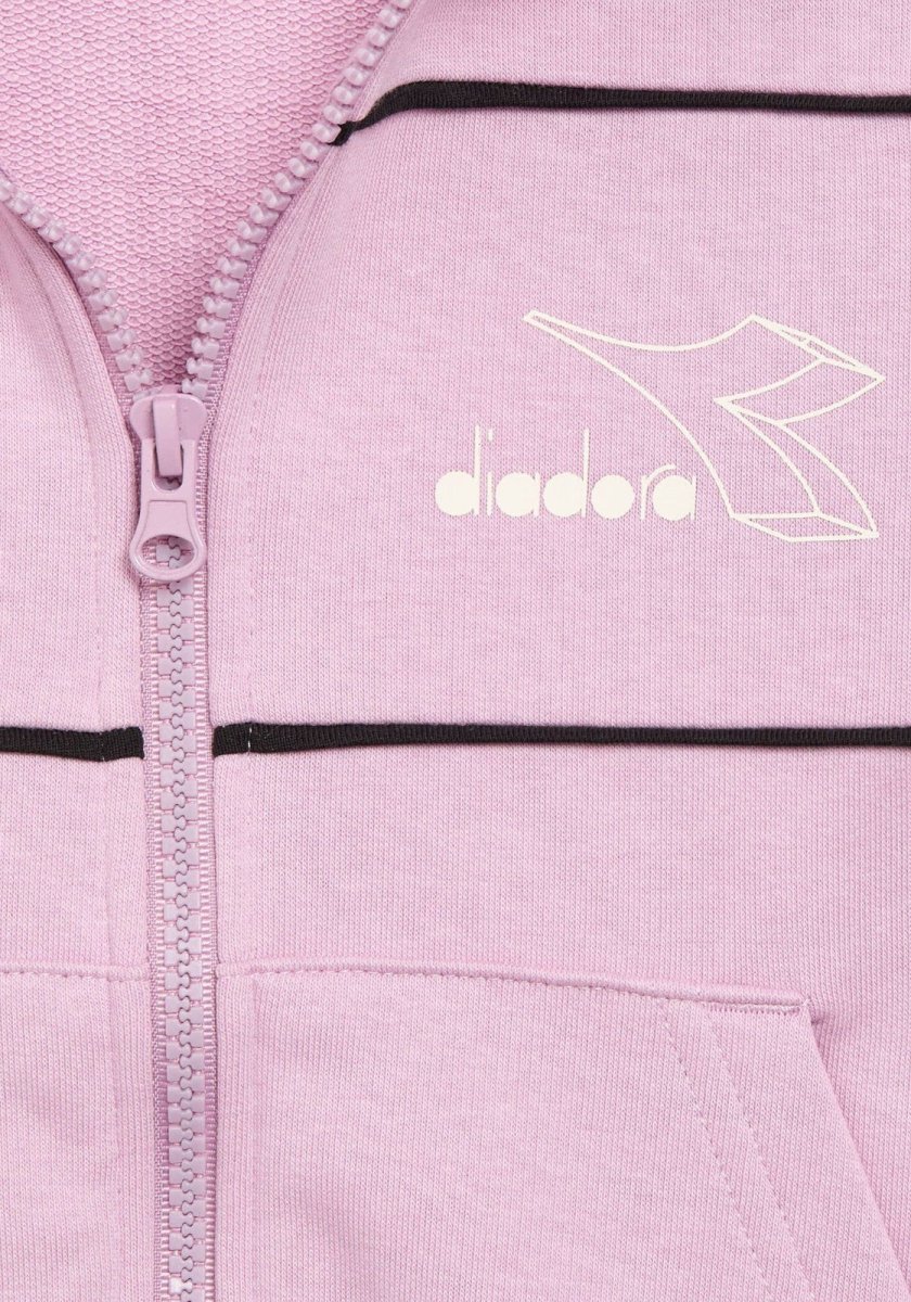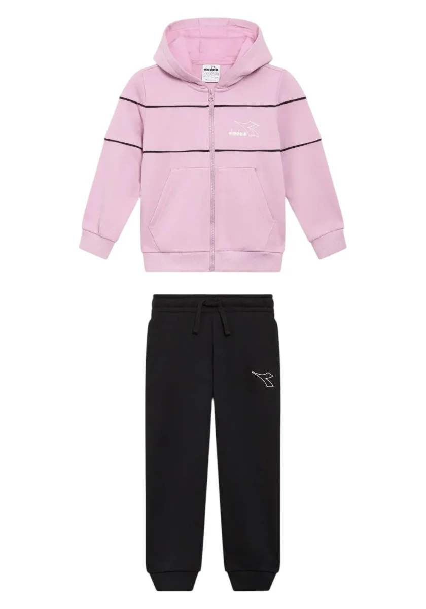 Felpa con full zip e cappuccio, pantaloni a contrasto con vita regolabile.