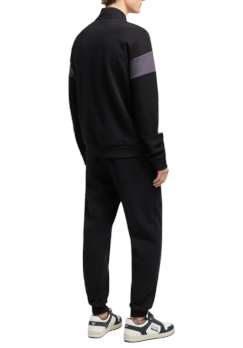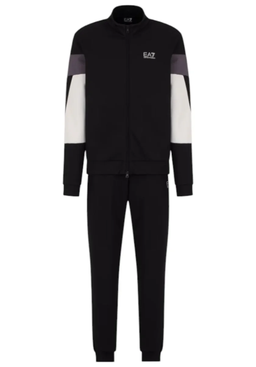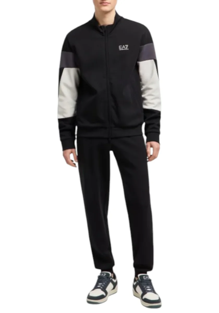 Linee semplici e giochi di colore caratterizzano questa tuta realizzata in misto cotone. Il modello si compone di una felpa con collo montante e chiusura con zip, e un pantalone con vita elastica e due tasche laterali. I contrasti cromatici e il logo EA7 che personalizza entrambi i capi, rendono questa creazione unica e adatta sia per momenti di sport che per il tempo libero.