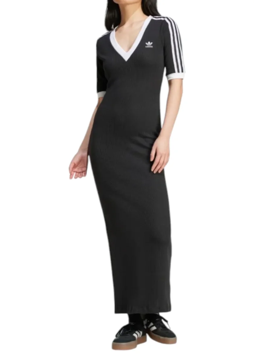 Caratterizzato da una vestibilità aderente e da una struttura in filato doppio, quest’abito adidas segue tutti i tuoi movimenti. Il look iconico si abbina perfettamente alle tue sneaker preferite o anche a un paio di scarpe con il tacco. Qualunque cosa ti riservi la giornata, o la serata, quest’abito con scollo a V ti assicura sempre uno stile sportivo e raffinato.