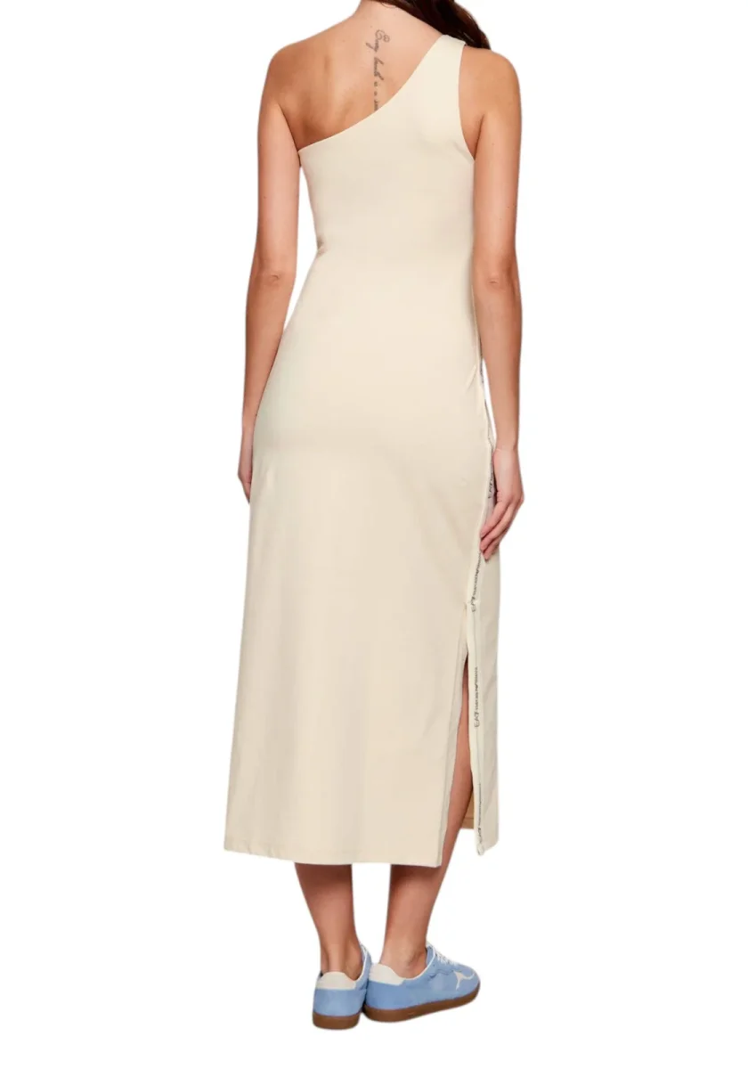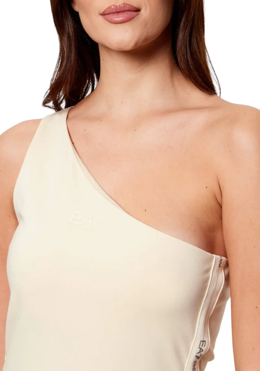 Vestito lungo mono spalla EA7 donna con banda laterale logata. Realizzato in misto cotone